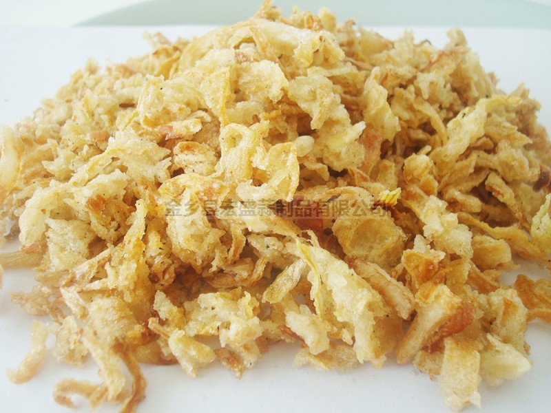 The company's fried onion crisp products has two kinds raw materials: shallot and onion, both its fragrance and color are not the same,Customers can choose the right products according to the needs. Fried onion is produced by the selected high quality onions (shallots) after peeling, selection, rinsing, disinfection, cut grain, mix flour, fried, refined,Rich flavor, attractive color, known as the most fragrant earth grain.It is essential for cooking, soup, stew, pickled Hakka noodles, Taiwan braised pork rice, Ajisen Hand-Pulled Noodle etc..The main customers of this product wholesale are foreign customers, all kinds of meat products processing factory, Chinese restaurant, western restaurant, desktop restaurant, instant noodles production enterprises and so on.